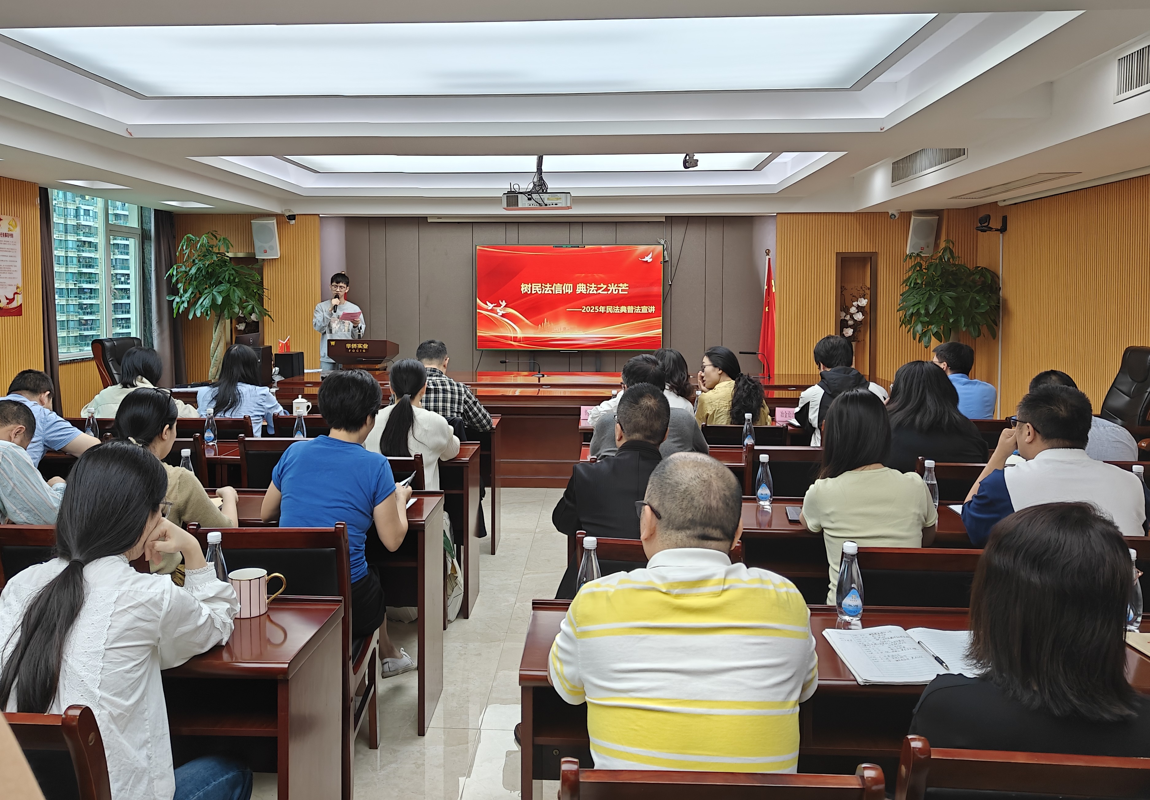 2025年5月,正值我國第五個“民法典宣傳月”。為深入貫徹習近平法治思想,進一步加大民法典宣傳力度,提升全體職工的法治意識,2025年5月29日下午,在福建省華僑實業集團有限責任公司會議室舉辦了一場主題為“樹民法信仰,典法之光芒”的民法典普法宣講活動。本次活動由福建省冶金(控股)有限責任公司主辦,福建省華僑實業集團有限責任公司、福建省冶金工業設計院有限公司協辦,線上線下共計80余名職工參與。
